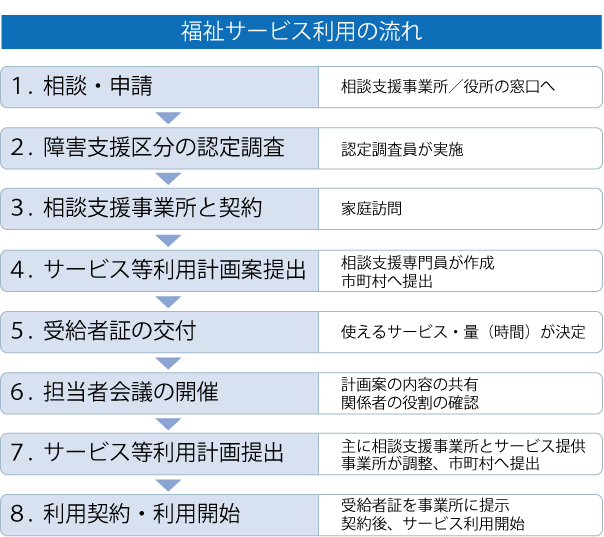 福祉サービスの相談・申請から利用開始までをサポートします。